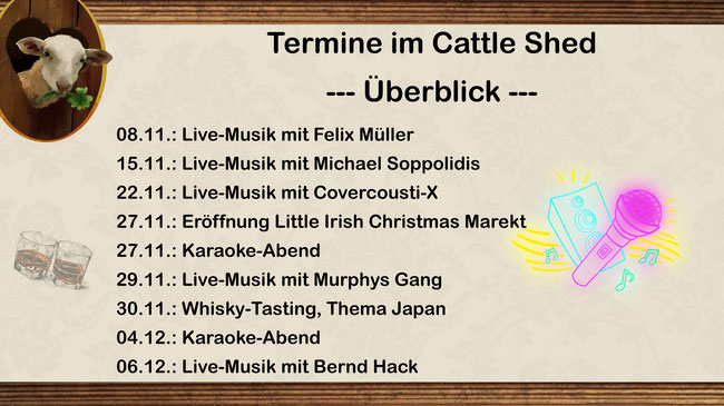 Den ersten Sonntag im Monat nutzen wir oft für besondere Aktionen (z.B. Whisky & Crime, Pub-Quiz, Kirche im Pub, Mitarbeiterausflug etc.)! Daher bitte jeweilige Aktion beachten, teilweise finden diese als geschlossene Veranstaltung statt. Aktuelle Veranstaltungen erfahrt ihr über die sozialen Medien bzw. hier auf der Website.