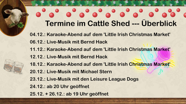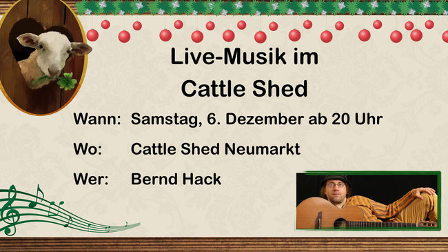 Schon lange Zeit hat in Neumarkt eines gefehlt: ein richtiges, gemütliches Irish Pub. Jürgen Lang hat sich daraufhin nach passenden Örtlichkeiten umgesehen und schließlich im September 2010 das Cattle Shed am Viehmarkt gegründet. Kurz darauf musste eine neue Aushilfe her, und da bin dann ich, Simon Richter, ins Spiel gekommen. Anfangs war es einen Tag die Woche, bald darauf schon vier, fünf oder sechs Tage, die ich abends im Cattle Shed hinter dem Tresen war. Ich fand zunehmend Spaß daran, hinter der Bar zu stehen, immer mehr Gäste persönlich kennenzulernen und dabei auch Freundschaften zu schließen. Und so musste ich nicht lange überlegen, als ich im März 2013 die Möglichkeit erhielt, das Cattle Shed zu übernehmen. Dank meiner tatkräftig mitwirkenden Familie, die zu jeder Zeit mithilft, hat sich die Entscheidung auch im Nachhinein als sehr positiv erwiesen.